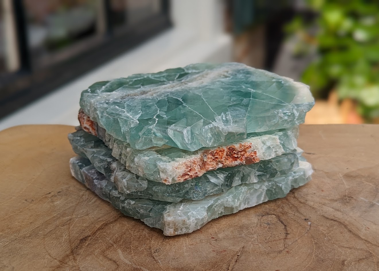 Super kwaliteit Groene en Paarse Fluoriet onderzetter set.