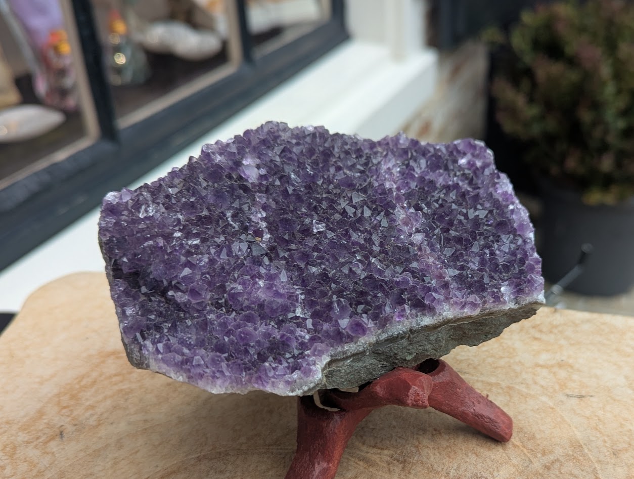 Hij heeft de prachtige eerste kwaliteit donkerpaarse kristallen maar ook de heldere fijne kristallen!