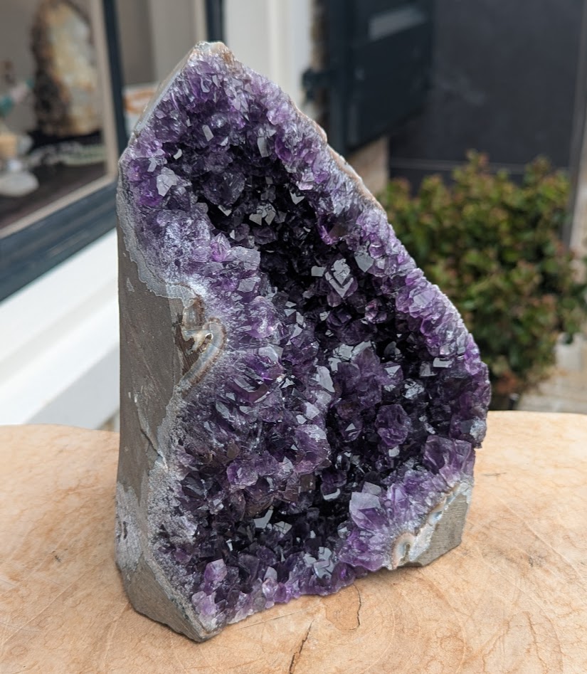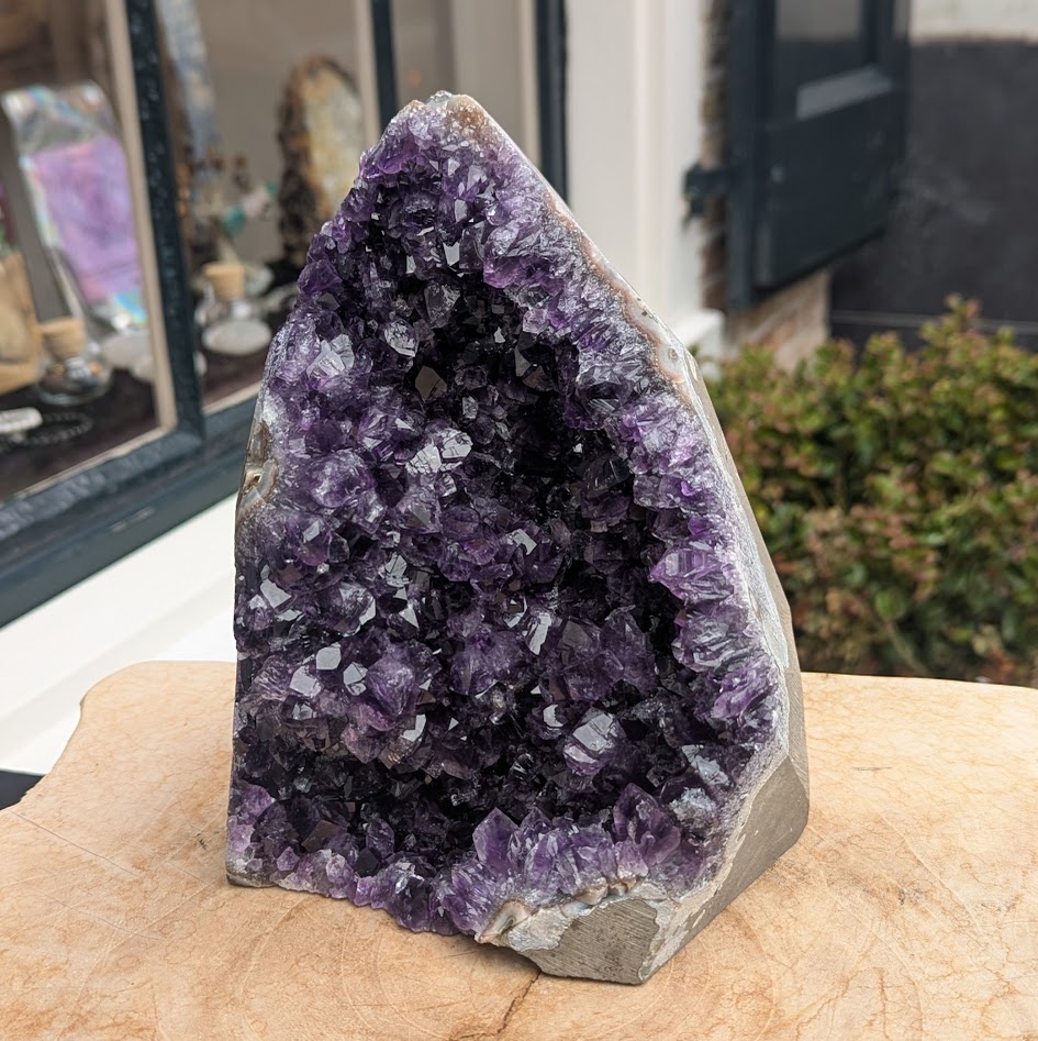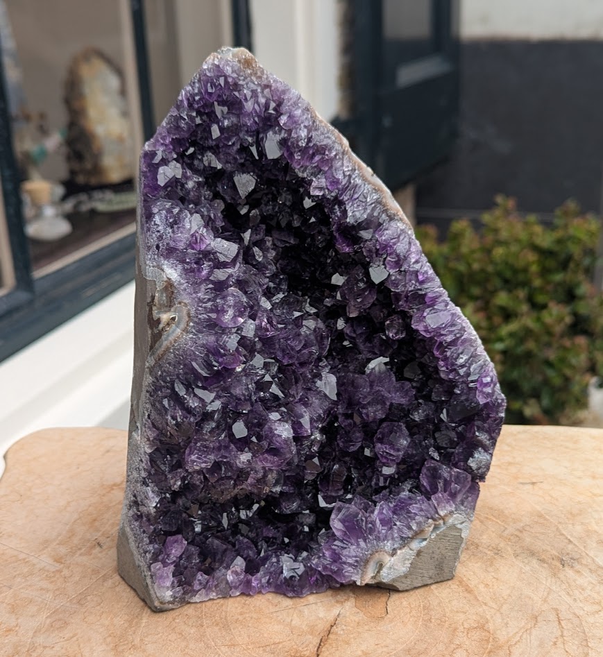 Op de foto een prachtige staande cluster van Uruguai Amethist van bijzondere kwaliteit.