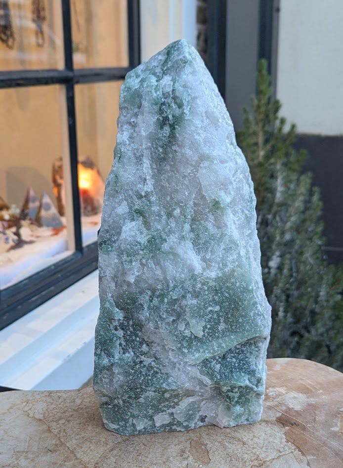 Op de foto een schitterende staande Aventurijn in kwarts steen!