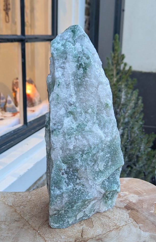 Voor een mooie plek in uw leef, werk of praktijkruimte want het is niet alleen de Aventurijn hier maar ook de Bergkristal die zijn werking heeft maar ook samenwerkt en de eigenschappen van de Aventurijn daarmee versterkt!
