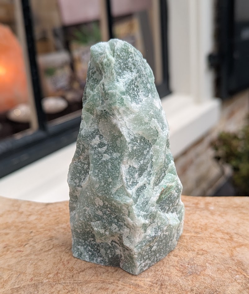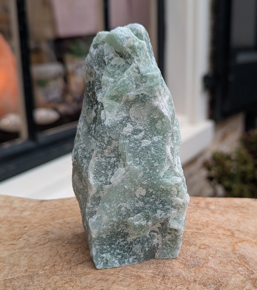 Op de foto een staand stuk ruwe aventurijn in de kleine maat.