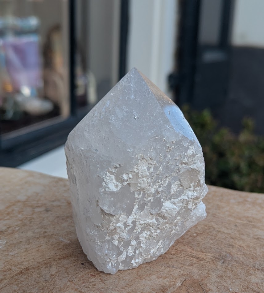 Bergkristal Ice , gepolijst vanuit het ruwe naar een verfijnde maar stoere, stevige punt.