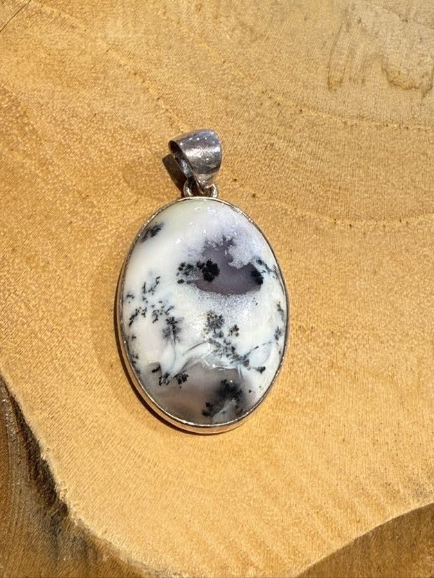 Het is een Dendrieten opaal hanger. Hij heeft de maten van 23 mm breed en 30 mm hoog.