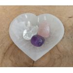 Seleniet is genoemd naar Selene, de Griekse godin van de maan. Vooral de selenietbol doet sterk denken aan de maan en zijn energie, en het Seleniet hart is van een reinheid die meteen opvalt. Zijn kleur is wit maar ook oranje bestaat. De vindplaats is vaak Mexico. Seleniet reinigt, kalmeert en zuivert.