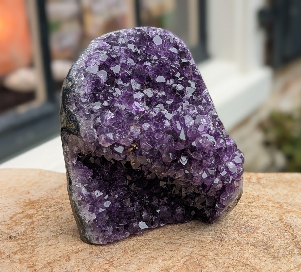 De Amethist cluster staand heeft de maten van 10,5 cm hoog, 9 cm breed en 8,5 cm diep.