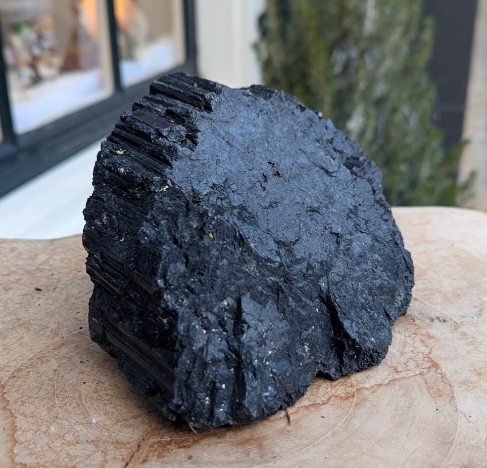 Op de foto een ruwe Zwarte Toermalijn steen in de large maat.