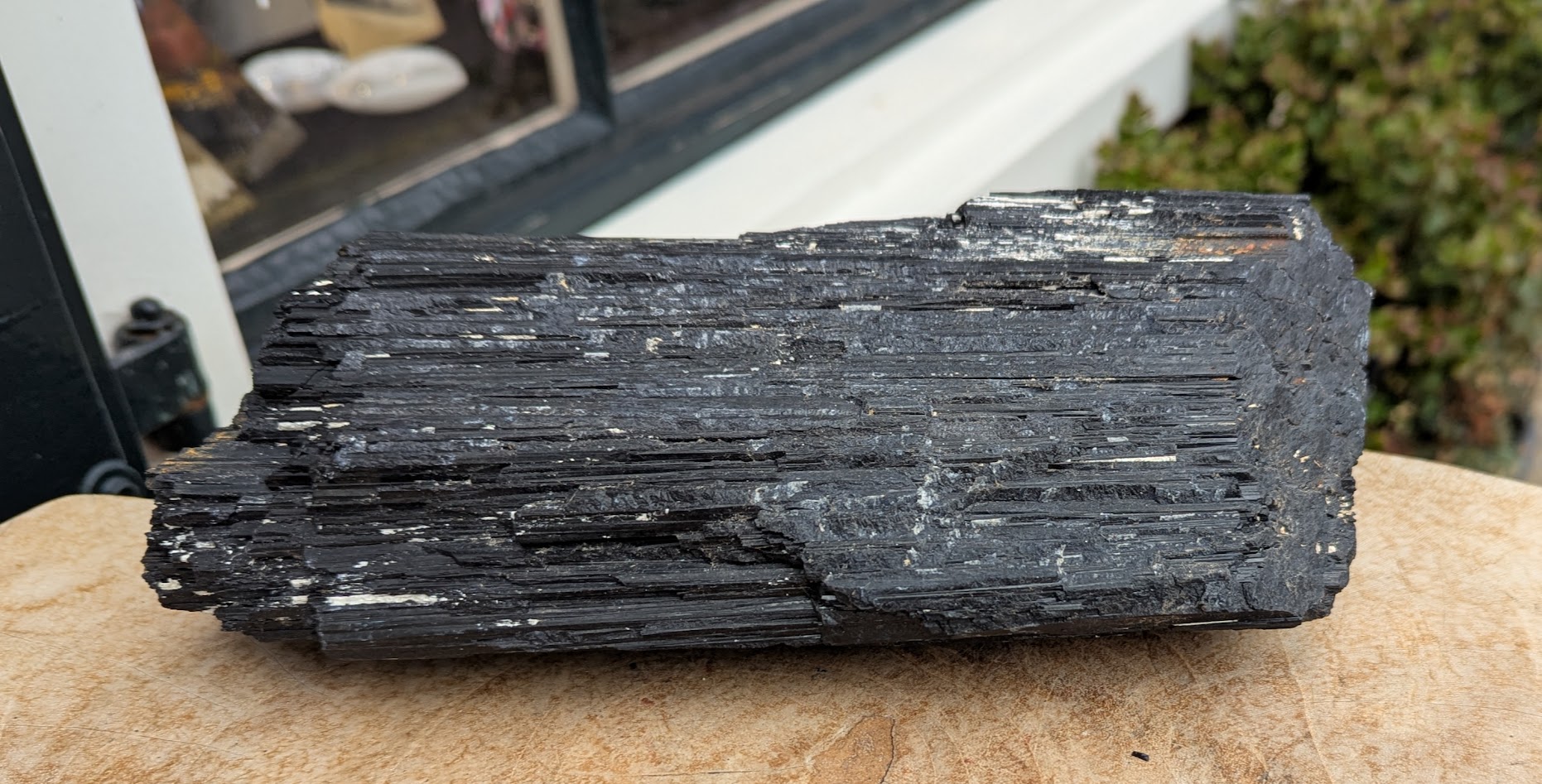 Deze extra grote Zwarte Toermalijn op de foto's heeft de maten van 23,5 cm lang, 10 cm breed en 7 cm hoog.