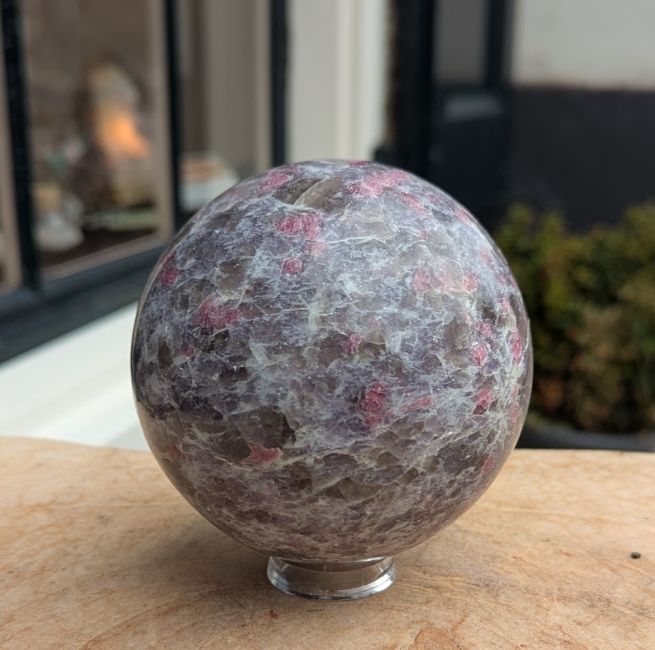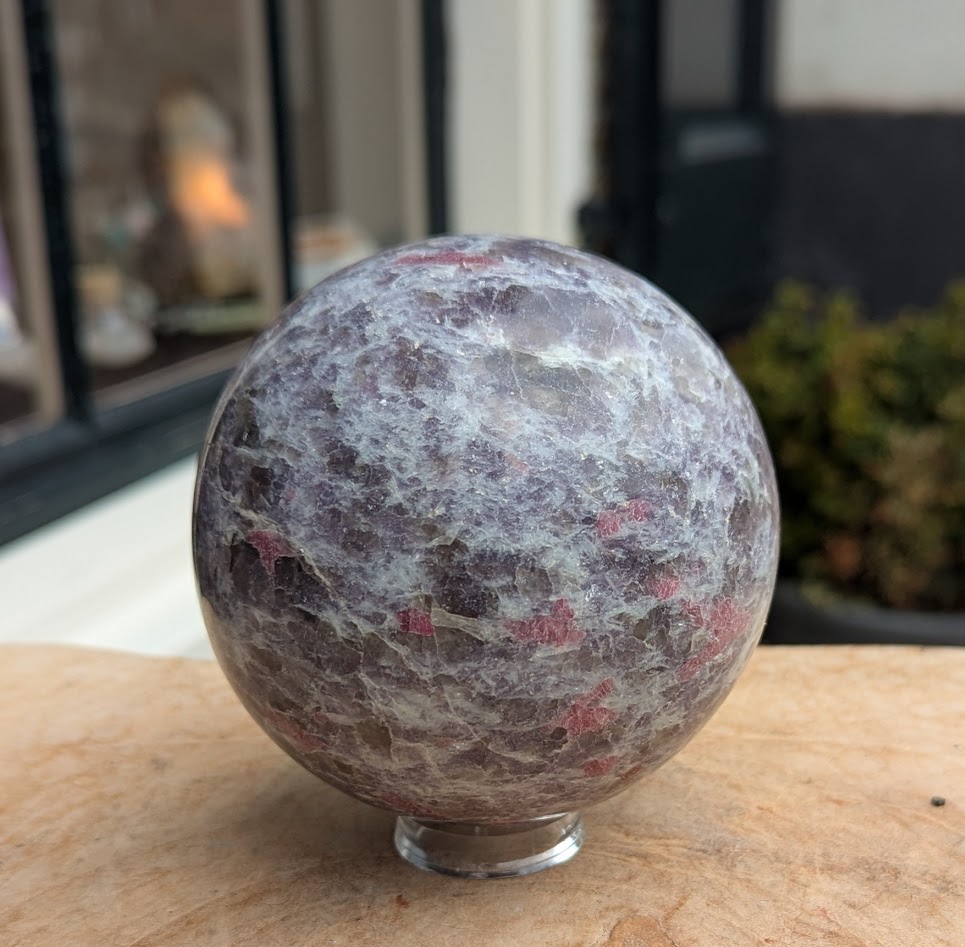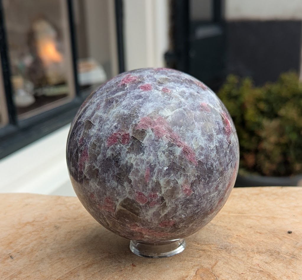 Op de foto's een bol van Lepidoliet in de large maat en in werkelijk een prachtige kwaliteit!