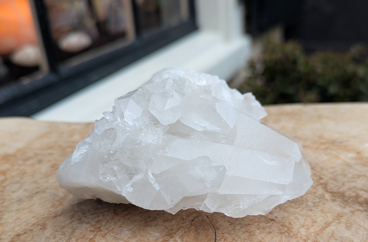 Afmeting van de bergkristal cluster is 9 cm lang, 8 cm breed en 5 cm hoog. Hij is superhelder en spatzuiver van kristal, grotere en kleinere kristallen vergroeid met elkaar!