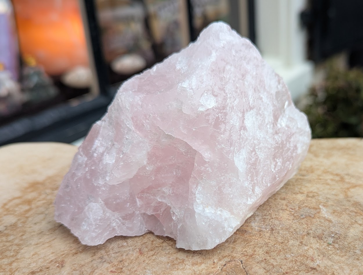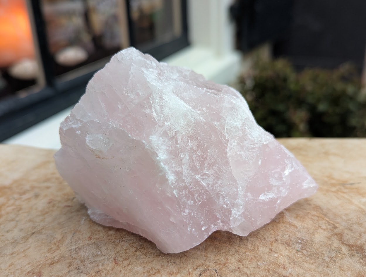 De Rozenkwarts steen heeft de maten 7,5 cm hoog, 10 cm lang en 8 cm breed Hij is ruw, extra helder en extra rose van kleur uit madagascar.