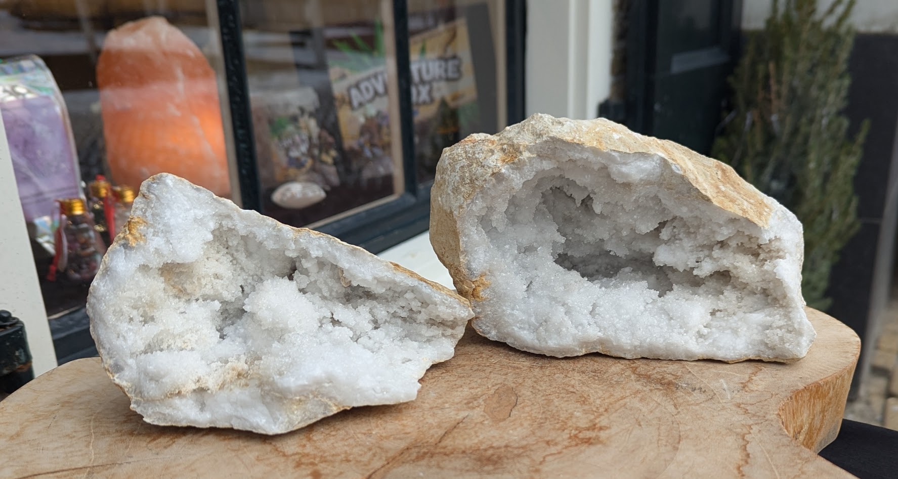 Deze Geode bestaat uit twee helften die hier op de foto staan.
