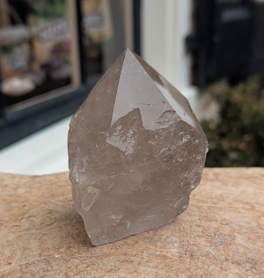 Op de foto een ruwe geslepen punt Rookkwarts.