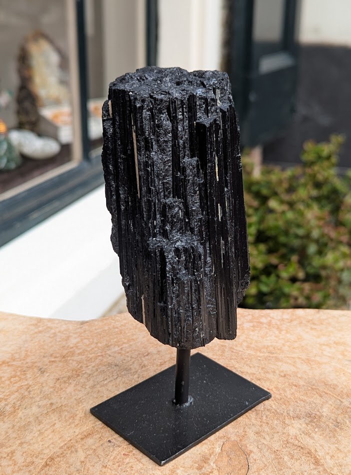 Deze stenen zijn al als een rots van ruwe pure Zwarte Toermalijn maar op deze standaard gezet is hij nóg indrukwekkender!