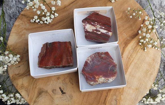 Speciaal voor de verzamelaars versteend hout in een klein doosje.